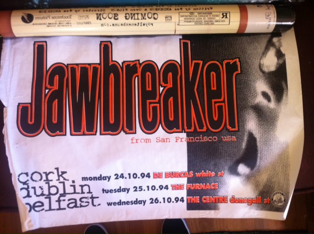 I saw jawbreaker in a place called de burcas in cork,ireland 1994.one of the best gigs,tried to get a support slot as we played there a lot back then,great memories!